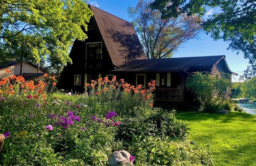 A-Frame of Mind on Blue Lake with pontoon for rent is located in Zimmerman. A-Frame of Mind on Blue Lake with pontoon for rent provides accommodation, featuring Balcony/Terrace, Sports/Activities, Child Friendly, among other amenities. This Cabin features Balcony/Terrace, Sports/Activities, Child Friendly, to make your stay a comfortable one.