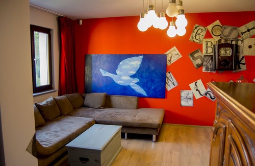 Abracadabra is a Plovdiv getaway to those, who seek a genuine central location, a spacious accommodation to enjoy when sightseeing is done and it strives to cheer up guests who love a décor a bit more eclectic and decadent than most. Decorated by two style enthusiasts, the place is bold, bright and artistic, yet homely and well-appointed throughout.the space