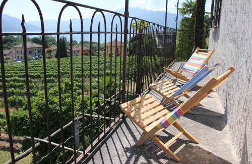 The rustic Ticino house stands in a vineyard in the middle of the lively town of Tenero. It has a beautiful garden seating area with a view of the vines and Lake Maggiore. In the house you have a lot of space to feel comfortable even in the cooler season. 3 bedrooms, 2 lounges and a large kitchen offer space for 6 people. Two pull-out sofas for 2 additional people are available (additional CHF 25 each for each additional person over 6).