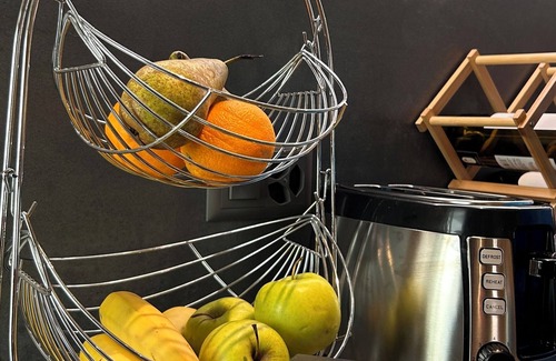 as you settle into this 1-bedroom, 1-bathroom rental, you'll find a fireplace, air conditioning, and a desk Connect to the free WiFi, or get cozy in front of the TV. Bathroom amenities include soap and shampoo. The kitchen is equipped with an oven, a refrigerator, and a dishwasher, as well as a coffee maker and a kitchen island. And you can even pack a bit lighter because there's a washer and dryer. Other amenities include an ironing board, heating, and a desk chair.