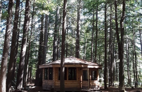 innisfree features numerous sleeping options for more than 12, including two full cabins, an a-frame, a recreational gazebo as well as campsites to pitch one of our 3 tents Feel free to bring your own boat (Flying Pond has a public ramp) or use the island’s pontoon boat to make the short 5-minute ride from the mainland, where you will have a private dock as well as a driveway large enough to comfortably accommodate four vehicles.