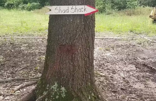 we named this cabin the shad shack because we decorated it with freshwater fish pictures like the big mouth bass, catfish, and the shad that they love to feed on