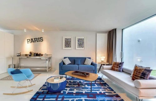 Located in one of Paris’s most charming neighborhoods, this modern four-bedroom apartment blends timeless elegance with contemporary comfort. Designed in calming blue hues and clean, minimalist lines, the space offers a serene atmosphere perfect for relaxation or work.