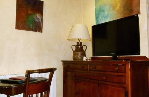 tv wild screen wi-fi, dvd, an adjustable table, a desk, all done with taste