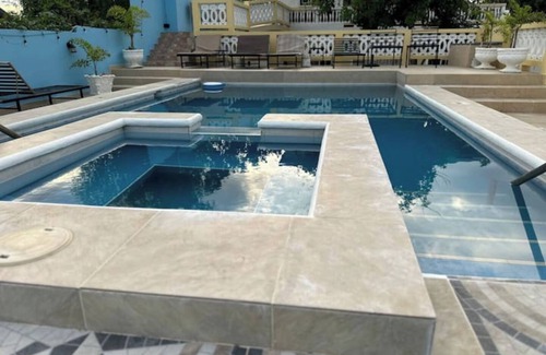 welcome to dela de-rose, a versatile 19-bedroom retreat perfect for solo stays, group getaways, or events The rooftop, designed for relaxation and fun, features stunning sunsets and space for private events, sunbathing, or quiet moments. Guests can enjoy a pool with a jacuzzi, a large dining room, a TV room, and a family room. Rent as single rooms, two-bedroom units, or the entire property for conferences, weddings, or group vacations. perfect for unforgettable gatherings in jamaica!