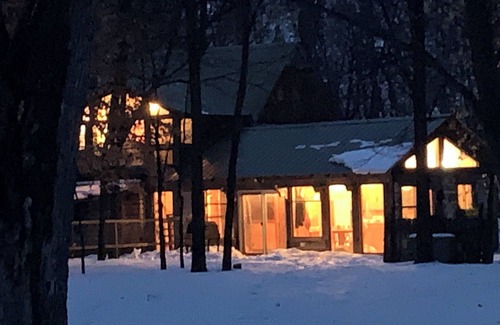 this rustic cabin is tucked away on 2 acres on long lake The original log structure dates to 1858 with a new addition built out of repurposed barn wood. Enjoy a quiet retreat or a romantic getaway by the fireplace. Spend some time by the lake enjoying the fresh air and wildlife, or reconnect with family around the table playing games. Our cabin is the perfect place to re-energize and reconnect.