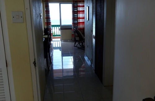 Located on the vibrant south coast of Barbados my fourth floor apartment has a private entrance, protected by two outer access doors. One can relax on the 2 balconies with sea views where shade is at the front in the mornings and at the back in the afternoons. The bedrooms are air-conditioned but often this isn't needed as the air flows through from the many windows and two balcony doors. There are 2 bathrooms, (1 en suite), with a walk-in shower and a hairdryer. There is a large open plan living room/dining area with flat screen TV plus cable channels. The well-equipped kitchen features a Westinghouse cooker, a refrigerator, microwave and kitchenware. A separate laundry room has a washing machine and a drier.