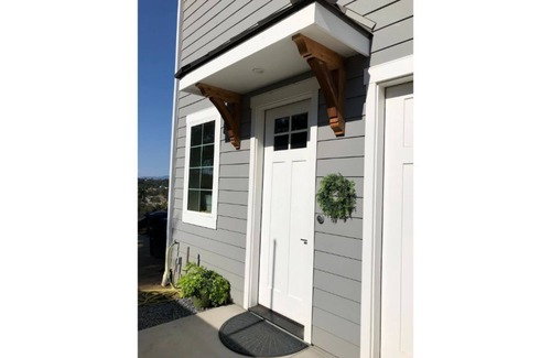 new guesthouse, up the lane, in the quiet hidden meadows neighborhood Second floor beautiful views of trees and hillsides. Full spacious kitchen. Designed to be a great place for a family to rest and relax between fun outings in San Diego and Orange County.