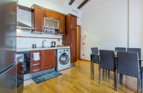 Travel Habitat B Jardines del Turia is on Santa Rita Street, 200 meters from the imposing Torres de Serranos, one of the main gates of the old city wall. It is a 2 bedroom apartment, the first with 1 double bed, the second with two single beds and a sofa bed with a total capacity for 6 people. It has parquet flooring, living room with sofa and flat screen TV. Fully equipped kitchen with hob, oven, dishwasher, washing machine and coffee maker. A bathroom with shower and hairdryer. The apartment has air conditioning heating and free Wi-Fi.