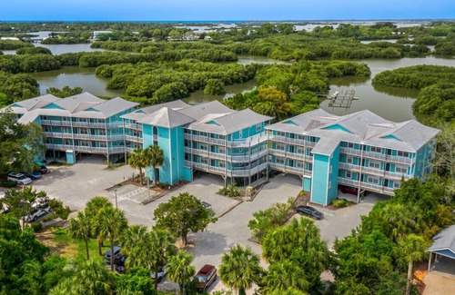 “your” natures landing condo is the perfect vacation location with an elevator, heated pool, hot tub, grills, picnic tables, fire pit, kayak launching deck, fish cleaning station, and pier for fishing right on the property Picture yourself sitting on your condo deck overlooking the beautiful marsh and water as you relax, read or bird watch – sighting spoonbills, pelicans, herons and osprey.