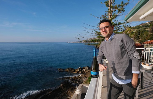 this exclusive liguria holiday apartment has an unforgettable terrace just in front of the sea equipped of: table, chairs and deckchairs