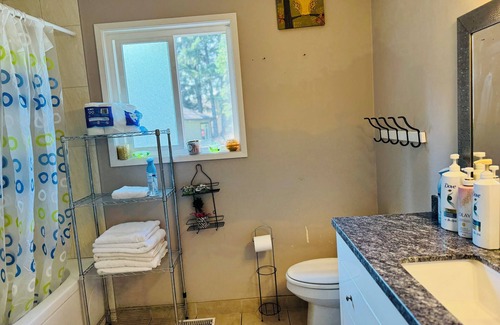 Surrey is waiting for you at this 2-bedroom bed & breakfast. The cozy rooms feature a king bed, queen bed, and full bed, perfect for a tranquil night's sleep. Enjoy the soothing bathtub and hair dryer amenities in the bathroom. Whether you're looking for a cool retreat or a relaxing getaway, this property has everything you need for a memorable stay. We look forward to hosting you at our place..