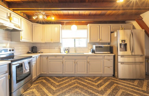 a cozy & moody retreat to come home to after a day of adventure & exploring the town, this cabin has been updated with modern day luxuries while still keeping a cozy mountain cabin feel Cook a family meal in fully stocked kitchen with all new appliances, or choose a book from our collection to read by fireplace. A new remote controlled gas fireplace will keep you cozy while drinking your morning coffee.