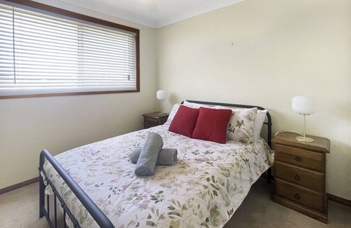 the home has everything you could need for a comfortable stay, from your cooking necessities, bedding for up to 6 guests, seating, a bbq outside, a double garage and street parking, laundry with supplies provided, games and books, televisions and nbn, and beautiful water views from upstairs to enjoy from the master bedroom, living area and balcony.