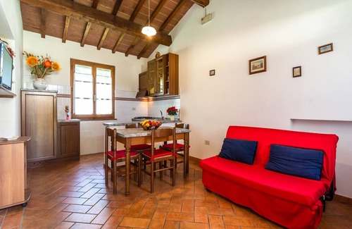 This cozy and beautiful agriturismo is in Castiglione Fiorentino in the rolling hills with forests, vineyards and olive trees. There are a total of three apartments overlooking a spacious garden.
