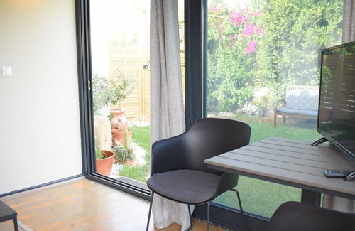 with the limited use of air conditioning units, limited use of conventional heating units, optimal exploitation of the cool winds in summer, reduction of solar radiation, use of heat-insulating and heat-switchable materials to repel the external temperature, minimizing heat losses, excellent sound insulation, energy reduction through smart devices led, excellent water management, intelligent exploitation of solar energy, use of greenery as sound insulation material and wellness enhancing material and use of ecological methods of green management, we offer you a short-term or even long-term stay adapted to sustainability , to the reduction of human environmental impact and to more general protection of the environment and natural resources.