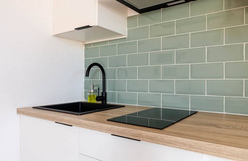 next, there is the kitchen with dining area and a very complete equipment, vitro-ceramic hob The bedroom has a double bed. The en-suite bathroom of this room has a shower. If you are travelling with your baby, we provide a cot or mini-cot and a high chair, as well as a baby bath, some toys and crockery for children.