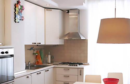 the flat, about 60sqm (645 sqft), is in a building with elevator The whole apartment benefits from high ceilings and opens on a wide living room, with comfortable sofa bed, 40 inches TV screen and a fully furnished, open space kitchen equipped with all modern appliances including dishwasher and Nespresso machine.