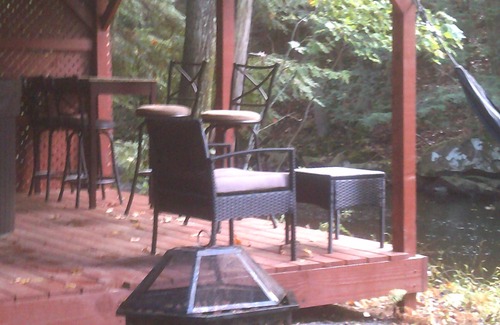 NESTLED ALONGSIDE THE WAPWALLOPEN CREEK THERE IS A CABIN, CAMPER AND TENT FOR YOUR GROUP OF FAMILY , FRIENDS TO HAVE ALL TO YOURSELVES ON 19.3 ACRES ! THE NEWLY REMODELED CABIN SLEEPS 10 PEOPLE , THE 5TH. WHEEL CAMPER SLEEPS 6 PEOPLE AND THE TENT SLEEPS 4 PEOPLE . FOR YOUR PRIVATE USE WE HAVE A VOLLEYBALL NET , SWINGS, MERRY GO ROUND , SOCCER NET , BASKETBALL HOOP AND HOT TUB AT THE CABIN SITE AND THE TENT SITE . INDIAN FIREPIT AT THE CABIN, CHARCOAL GRILL AT THE CABIN AND TENT AND CAMPER SITES . HAMMOCK AT THE TENT SITE . DO YOU NEED TO GET AWAY AND JUST RECHARGE AND RELAX THEN THIS IS THE PLACE FOR YOU ! READ YOUR BOOK YOU HAVE BEEN TRYING TO OPEN FOR SO LONG NOW AND LOOK UP TO SEE THE POND , ROAST MARSHMELLOWS AND TOAST HOT DOGS WHILE TELLING STORIES CHILDHOOD STORIES AND MAKING MORE MEMORIES ! SIP YOUR COFFEE ON THE SIDE DECK OVERLOOKING AND HEARING THE CREEK ROLLING DOWN TO THE SUSQUENHANNA RIVER . BRING YOUR FISHING ROD AND FISH IN THE WAPWALLOPEN CREEK WHERE NATIVE TROUT STILL EXIST . YOU PROBABLY WON'T WANT TO LEAVE BUT IF YOU DO THERE IS THE SKI RESORTS NEARBY, THE CROSSINGS OUTLETS, JIM THORPE HISTORICAL DISTRICT, CASINOS , ANTIQUING , ETC...….