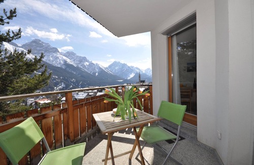 the south-facing balcony with a breathtaking view of the panorama of the lower engadine dolomites invites you to linger Sent is situated 3 km from Scuol on a sun terrace. In winter you can easily reach the ‘Motta Naluns’ ski area in 15 minutes on the free ski bus. The 10 km long dream piste leads to the northern edge of the village of Sent and ends not far above the holiday flat.