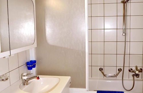 spacious living room with exposed wooden ceiling construction Functionally equipped kitchen with dishwasher. Two double bedrooms. Bathroom/WC/double washbasin. Small seating area at the end of the outside staircase at the entrance to the flat. Flatscreen TV with Sunrise, free WLAN, Nespresso coffee machine.
