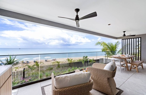 the condo’s open-plan layout welcomes an abundance of natural light, with floor-to-ceiling windows that showcase uninterrupted sea views Each unit features a private patio, perfect for enjoying the fresh ocean breeze or sipping your morning coffee while taking in the stunning scenery. The spacious living area is complemented by sleek, modern furnishings and bespoke details, making this a truly unique home. Whether you’re unwinding in the living area or enjoying the view from your private balcony, the ocean is always within sight.