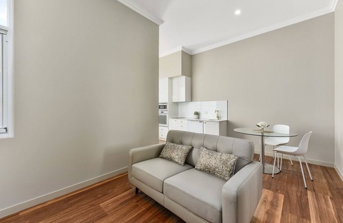 Aloha Central Platinum Apartments are located directly on the main street of Mount Gambier. The world heritage style exterior was incorporated into the property in keeping with the historical building and architecture in Mount Gambier. This one bedroom apartment is fitted with modern furniture and boast quality finishes including stone bench tops in the kitchen and bathroom vanity, quality cabinetry, reverse cycle air conditioning, a leather couch, gas log fire and king size bed..