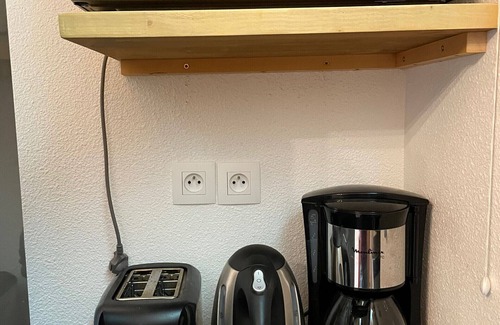 furnished in a "mountain" style, perfectly equipped, the apartment is located in a recent residence with lift, wifi, at the foot of the rombière and font d'alagnon ski slopes You will find a fully equipped kitchen (fridge/freezer, microwave, filter coffee maker and Tassimo coffee maker/washing machine, kettle, toaster, citrus press...but no dishwasher). A raclette appliance is also present. This accommodation also has a shower room with its toilet and a separate toilet.