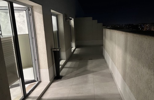 The penthouse is located in the Militari district, not far from the Plaza Shopping Mall, the AFI Shopping Mall and in a quiet location on Lake Morii. The center (Old Town) is not far from the apartment. The apartment has a view over Bucharest. At night, the lights of the illuminated city can be seen from the living room as well as Lake Morii. The penthouse is luxuriously furnished. High-quality German parquet, a modern built-in kitchen with BOSCH Home Connect devices such as a refrigerator, dishwasher, oven with microwave and steam function, ceramic hob and Nespresso coffee machine round off a black kitchen. The penthouse has a roof terrace to the east (20 sqm). The apartment is fully equipped with E-Home, all functions can be controlled via Apple Homepods, such as heating, air conditioning, Apple's sound system brings music to every room with Apple music. The bathroom is equipped with a modern shower and a modern look. The electronic door lock from Nuki facilitates access via keypad and the elevator gives you direct access to the underground car park. A parking space in the underground car park is available. The apartment is equipped with a single room air conditioner. (in every room).