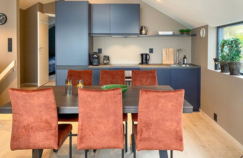 welcome to this beautiful apartment, which welcomes its guests with modern furnishings and a large panoramic window through which you can enjoy the magnificent view of the fjord Let your gaze wander over the surroundings as soon as you wake up, the view will make you look forward to the day ahead.
