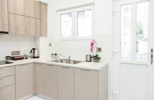 a newly updated, contemporary apartment located near koridallos square and multiple parks! the modern interior design emphasizes luxurious comfort and convenience, accommodating up to eight guests in this charming, bright, and cozy space