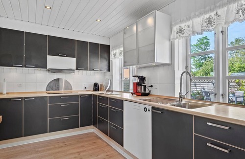 your spacious home is ideal for anyone looking for a combination of comfort, proximity to the sea and privacy Enjoy the peaceful location, the well-designed layout and the many opportunities to retreat both indoors and outdoors. Spend your time in a bright, inviting interior with plenty of space for socialising. Cook in the modern kitchen with generous equipment and eat together at the long dining table, which seats the whole family.
