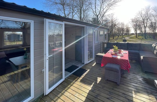 a relaxing holiday awaits you in your modern chalet with air conditioning in lauwersoog Surrounded by the idyllic landscape of the Lauwersmeer National Park, this house invites you to enjoy an unforgettable holiday. The stylishly furnished living area offers enough space to spend cosy hours with the family. The practically equipped kitchen allows you to prepare your favourite dishes and then enjoy them together at the inviting dining table.