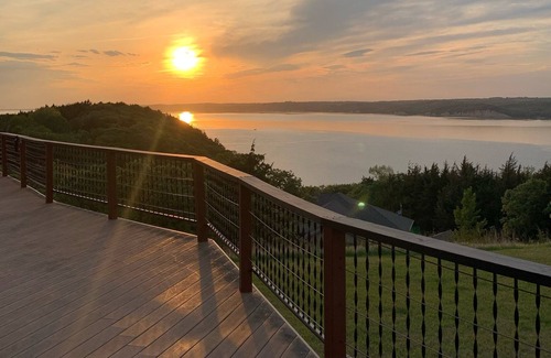 Large hilltop home with an incredible view of Lewis and Clark Lake. Minutes away from Weigand Marina, Gavins Point Dam, and Lewis and Clark Marina in SD. Enjoy a quiet location in a small neighborhood with a variety of recreational activities nearby. The home has 6 bedrooms and 3 1/2 baths in the main house. There is a bathroom and sitting area on each floor to provide additional privacy. The main house sleeps 12 adults. Children are welcome, however, the lawn is rough and not comfortable on bare feet.