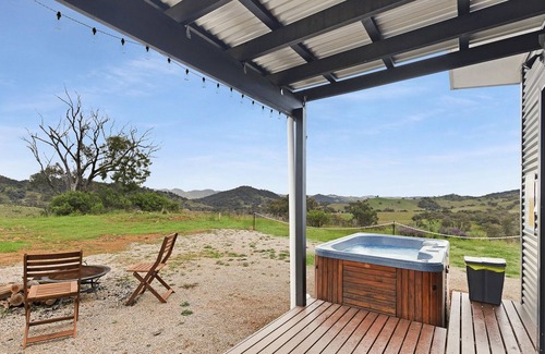 escape to the countryside in this picturesque 1-bed getaway cabin perfect for couples Featuring a cosy design and contemporary interiors this pristine country cabin boasts a charming deck, an outdoor firepit area and a private heated spa with spectacular views overlooking the idyllic rolling countryside. Situated near the popular Mudgee and its famous vineyards, indulge yourself in all the local bespoke shops, vineyards, breweries and cuisine all right at your fingertips.