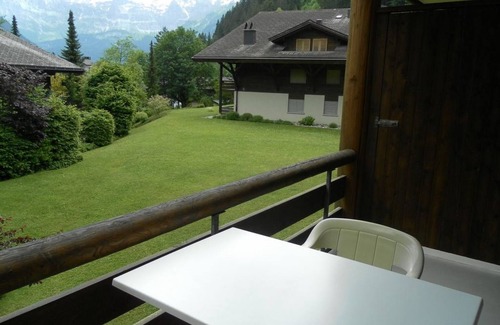 cozy studio with two folding beds, sitting area, tv, dining table, kitchen with stove, oven, fridge and basic cooking utensils and a separate bathroom with a bath Balcony with a beautiful view on the garden and the Wildstrubel Public transport included in the Simmental and Saanenland with the SIMMENTAL CARD: Overnight guests in the Lenk-Simmental holiday region travel free of charge on public transport for excursions with a valid guest card.