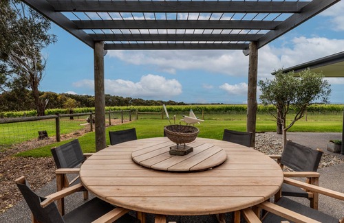Welcome to The Big House! The perfect destination for friends and family to come together. The Big House is situated at Oakdene Vineyard’s second vineyard and the home of Lighthouse Olive Oil. The house is literally on the edge of the huge shiraz vineyard and has views as far as the eye can see. Views all the way to Queenscliff and the Mornington Peninsula. It has just been renovated and is now the second house at the property.