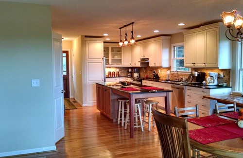 our home offers you a main floor with a master suite with a king-size bed and private bath with a walk-in shower and tv You also have a beautiful kitchen with granite counters, large eating area, and living area with a large flat screen TV, and gas fireplace, Wifi available. A half-bath is located just off the kitchen. Our second floor offers you three bedrooms and one full bath. One bedroom is furnished with twin beds while the other two have queen size beds. Beautiful hardwood floors can be found on the main floor with soft carpet on the second floor. Our lower porch has a gas grill for those who like to grill while they have a beautiful view. Your kitchen is furnished. Available also are small appliances--toaster, single pod coffee maker, regular coffee maker, high efficiency washer and dryer. Starter packages of paper products will be provided—toilet paper, tissue, paper towels, and trash bags. Towels and linens are provided. The house is first floor wheelchair accessible. Four-wheel drive vehicles are not required to access our home. For those of you that enjoy eating outdoors, there is a table and chairs for use on the upper porch.