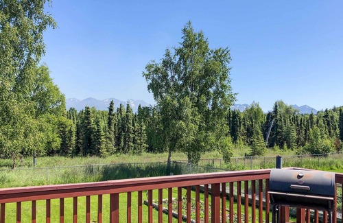 Feel as if you've stepped into an Alaskan homestead setting when you book this convenient family home backing up to the Chester Creek Greenbelt. The 4-bedroom, 2-bathroom house is highlighted by a spacious backyard, a greenhouse, a deck, and mountain views. Step inside and you'll discover plenty of space for the family to unwind with its 2 living areas and 2 kitchens. When you're ready to explore, you'll be just a stone's throw from downtown Anchorage's attractions and oceanfront wonders.