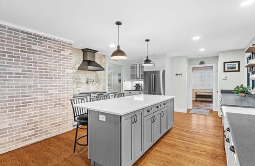 Relax in this 3-bedroom furnished home in Andover close to downtown shops, restaurants & nearby routes 93 & 495. This sprawling ranch borders the historic Wood Estate for a quiet retreat - yet only 5 minutes to the town center with shops and restaurants. 3 bedrooms & 3 baths are on main level. No need to climb stairs! Master suite has full wall of closets to accommodate any wardrobe with ensuite & private patio. Home has a Sonos sound system, keyless entry and smart thermostats. Enjoy coffee on a pretty landscaped patio or inside kitchen sitting area. A finished basement features laundry room, 2nd living area for watching movies, gym, & ping pong..