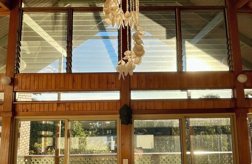 original beach-house has solid timber witzig architecture, north facing, nbn, eco-friendly passive solar, large covered deck, spacious & comfy living & dining areas spanning 3 levels