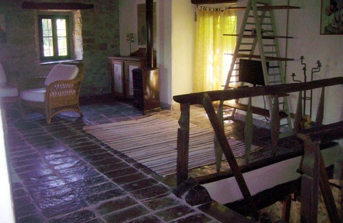 the "small house" is about 80 sq m and with 5 sleeps it's perfect for a family with 3 children It has 2 levels . On the ground floor is the really roomy bathroom, a guest toilet and the parents sleeping area with a king-size double-bed. There is also a fire-place and a stone-built oven. From here a rather steep wooden staircase brings you to the first floor and into the spacious living-room which is open to the roof. There are the children's sleeps in a separated corner with a double-bed and on a balcony above, a single bed . Next door is the well equipped big kitchen, with a dining-table inside and outside. Your private outdoor area is all around the house. The position of this house is mainly north-west, so in summer it remains nicely fresh.
