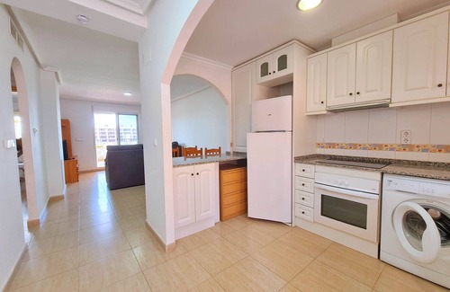 Apartments in Mar de Cristal with two bedrooms, one bathroom, terrace, living room, kitchen, garage with air conditioning, Wi-Fi and swimming pool. fully equipped with all types of household items and prepared to spend an excellent family holiday in the best area of the Mar Menor, very close to Cabo de Palos, La Manga del Mar Menor, the Calblanque Natural Park and the historic city of Cartagena. In Mar de Cristal you can enjoy the beach and sports areas with tennis and paddle tennis, as well as a wide variety of restaurants in the area..