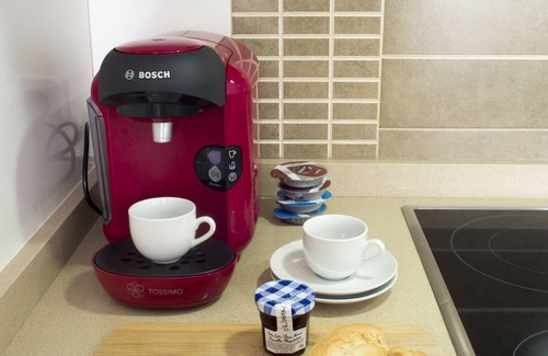 1 full open kitchen, fully equipped (dishes, cutlery, appliances, tassimo coffee maker, toaster, etc).