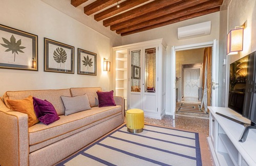 Located in Dorsoduro, close to the Peggy Guggenheim and Accademia galleries, stands Apartment Amara; a stunning three storey apartment accommodating up to eight guests across four stylish bedrooms, with a double sofa bed sleeping an additional two. Bursting with luxurious features and high-end amenities, Apartment Amara is perfectly suited to the most discerning guests, promising a relaxing and memorable stay in the heart of Venice.