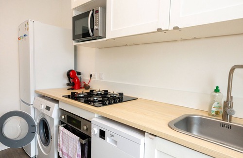 -living room with furnished lounge (tv, netflix, and wi-fi) and modern fitted kitchen dishwasher, washing machine, oven, microwave, hob, kettle, dolce gusto coffee machine…