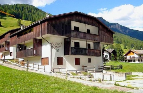 Small, comfortable apartment house "Genziana". 9 apartments in the property. In the district of Penia 1.5 km from the centre of Alba di Canazei, 3 km from the centre of Canazei, in a quiet position residential area (villas), 800 m from the skiing area. In the house: storage room for skis, central heating system, heating available only from 01.Dec. - 01.May.. In Winter: please take snow chains. Parking, communal covered parking at the house. Grocery 300 m, supermarket 1 km, restaurant, bar 300 m, bus stop 50 m. Mountain railway 800 m, ski bus stop 50 m. Nearby attractions: Sella Ronda 800 m, Marmolada 9 km. Please note: car recommended. Additional accommodations can be booked.