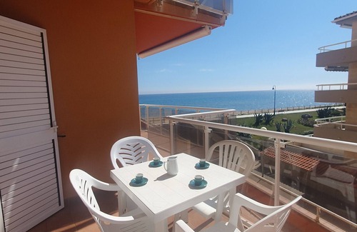 apartment first line on sea, terrace, with view to the beach with two double bedrooms and sofa-bed, totaly renewed, two new bathrooms with shower, equipped kitchen with microwave, dishwasher, washing machine, air conditioned in the living room with sofa-bed, big terrace with table and chairs with a great view to the beach of estartit costa brava Smart TV 43 if you have a private account you can connect with satellite tv Astra in Deutsch.Free Wifi.