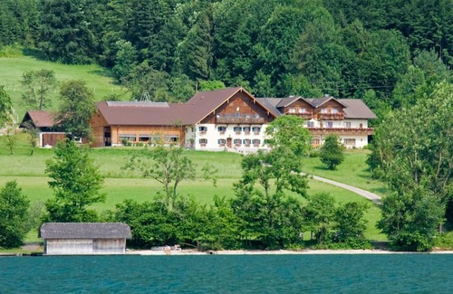 luxury holiday for your sensesour 4-flower organic farm is located on the south shore of lake attersee in a sunny location on the outskirts of steinbach We offer 5 top equipped apartments. Nearby (2 minutes) is the private beach. The sunbathing area invites you to relax, in the boat hut changing rooms and enough space for your bathing utensils are available. Sun loungers, rowing boats and surfboards are at leisure. For boat owners it is possible to use the buoy on request. Our guests particularly like to use the grill on the beach and enjoy the "golden hour" with a bottle of wine, when the setting sun is reflected in the sparkling lake. Here you can expect a holiday in one of the most beautiful regions of Austria - the mountain and lake Salzkammergut!Far from the hustle and bustle of everyday life, you can relax with us: on the lake, on the surrounding mountains or you can take advantage of the diverse cultural offer in the region. For your children, the holiday fun is not too short: boat ride, table tennis, a trip to the nearby wildlife park, a ride on the pirate ship and much more - there is something for everyone!.