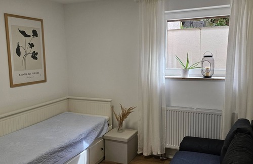 The holiday apartment Ferienwohnung Auszeit in Calw is the perfect accommodation for a stress-free holiday with your loved ones. The 55 m² property consists of a living room with a sofa bed for 2 people, a fully-equipped kitchen, 2 bedrooms and 1 bathroom and can therefore accommodate 5 people. Additional amenities include high-speed Wi-Fi (suitable for video calls), a smart TV with streaming services as well as a washing machine..